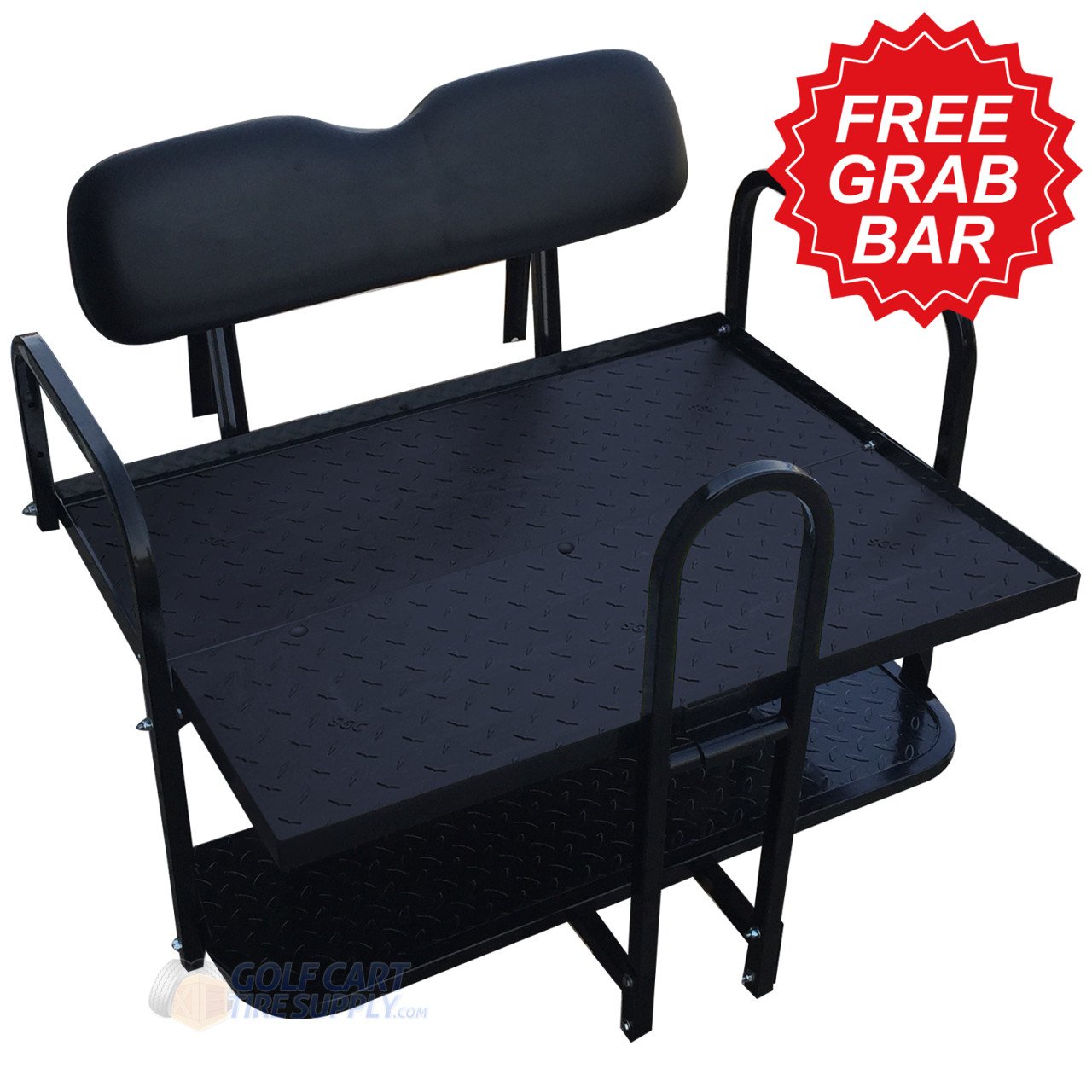 Yamaha G14 / G16 / G19 / G22 Golf Cart Rear Seat Kit NOMAD - BLACK - Flip Seat w/ Cargo Bed & Free Grab Bar