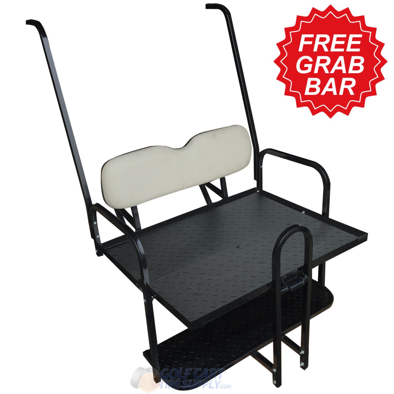 Yamaha G14 / G16 / G19 / G22 Golf Cart Rear Seat Kit NOMAD - IVORY (Matches Factory front seats) - Flip Seat w/ Cargo Bed & FREE Grab Bar