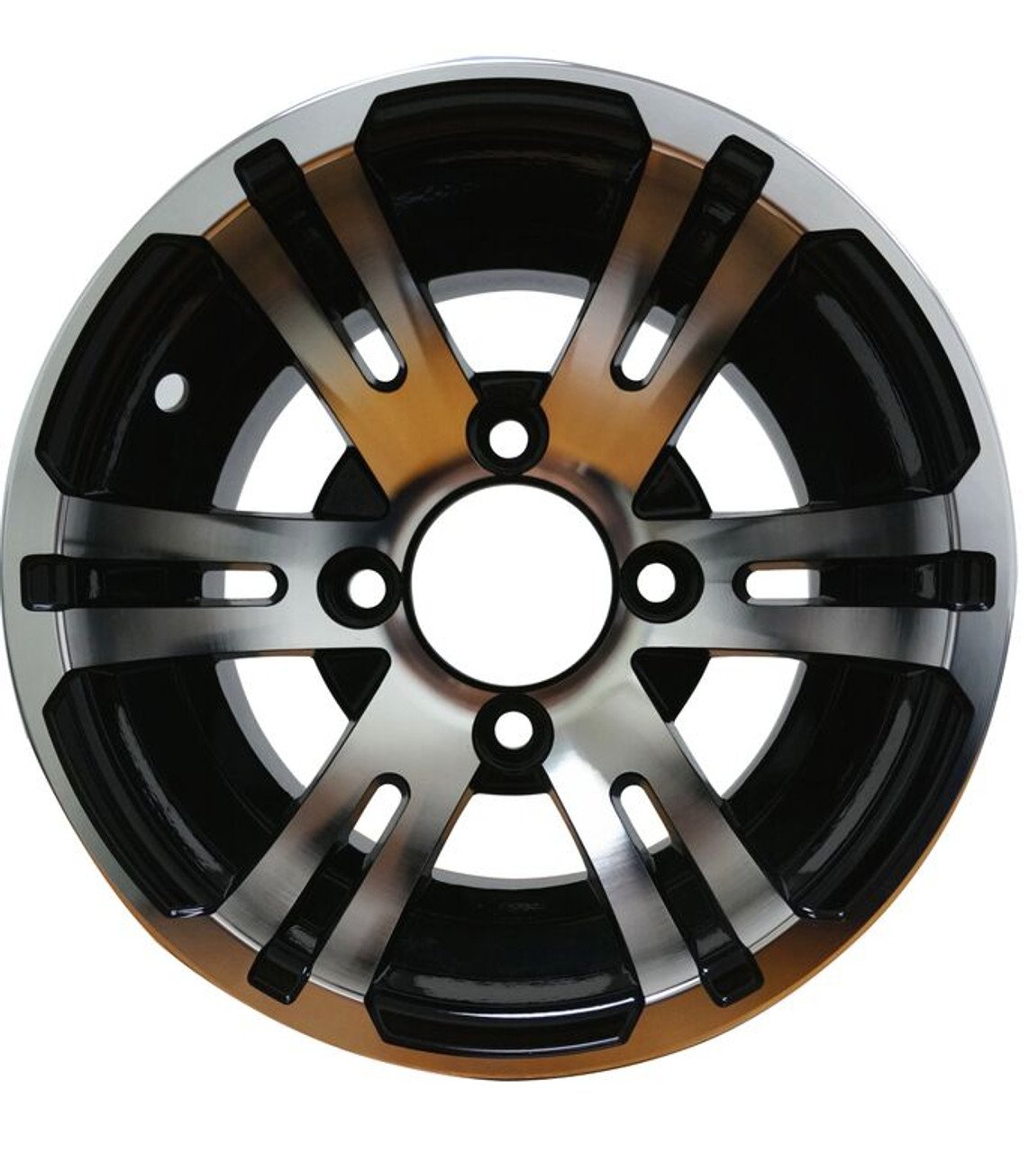 The BULLDOG wheel and tire package is a rock solid upgrade for your golf cart, requires no lift kit to use and looks as great as it rides smooth. This 10″ Machined/ Black Aluminum wheel is wrapped nicely with 205/50-10″ Low Profile DOT tires. This wheel kit does not require a lift kit, just bolt them on and go! The BULLDOG kit includes: