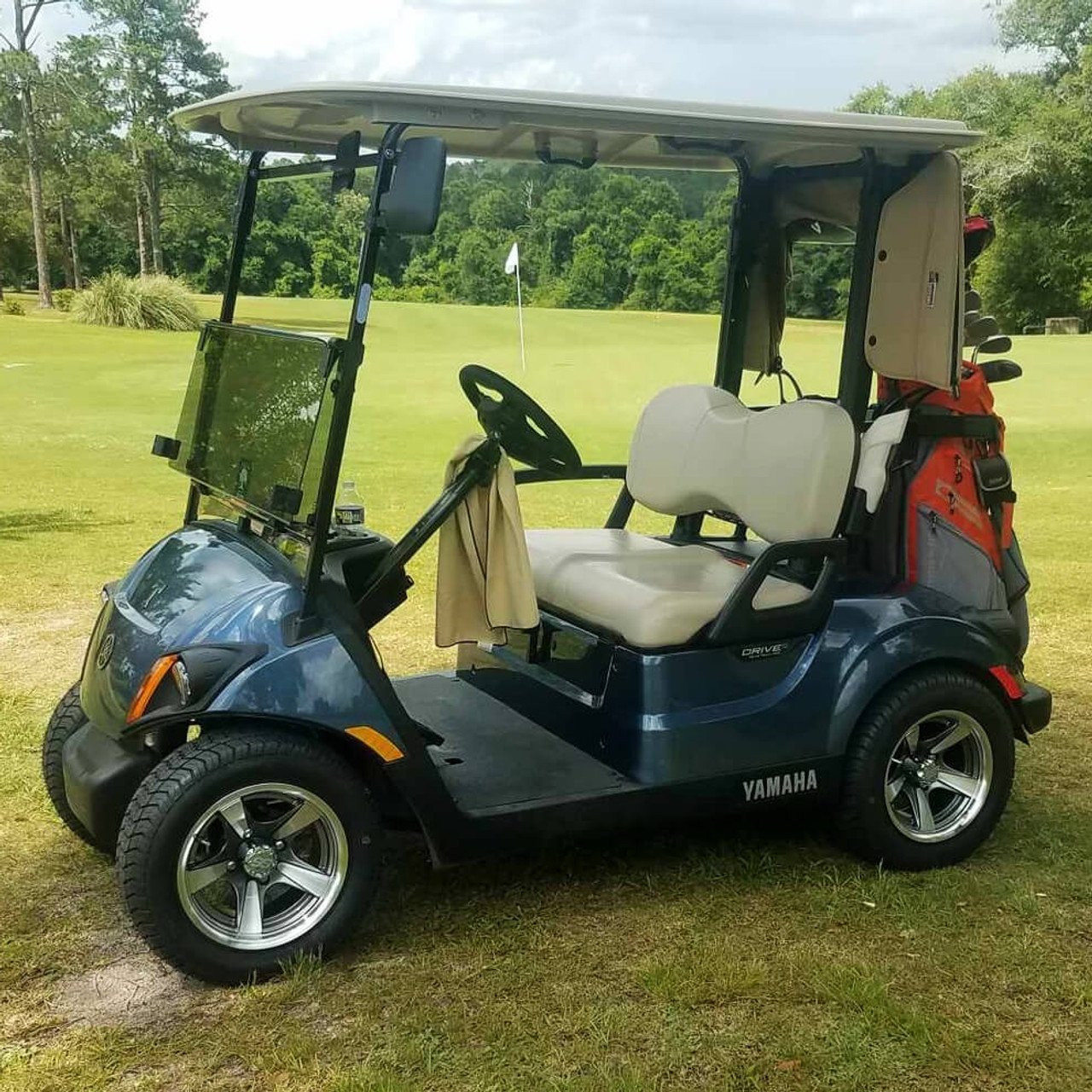 Yamaha G-Series: It is recommended you have a 3″ minimum Yamaha Golf Cart lift kit to use this combo with Yamaha G1 – G22 series golf carts to prevent any wheel rub.