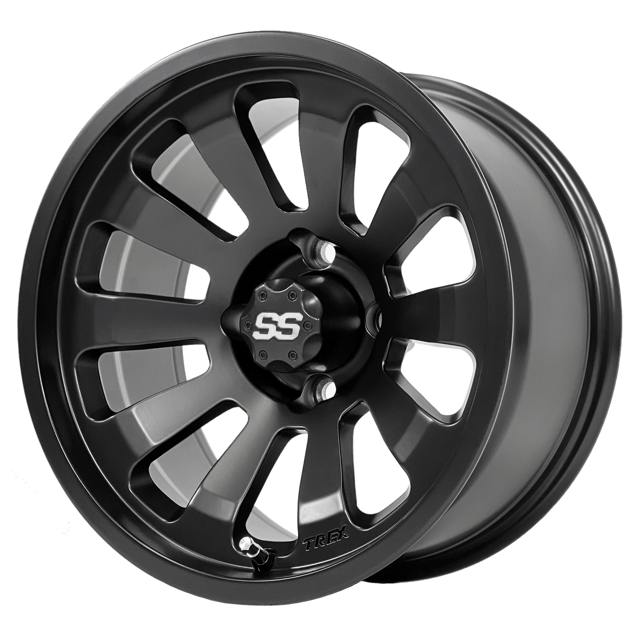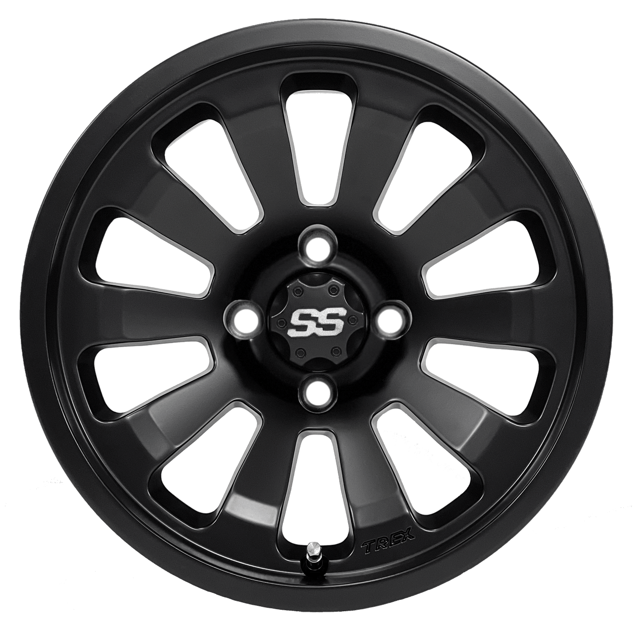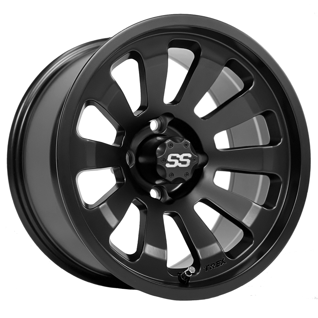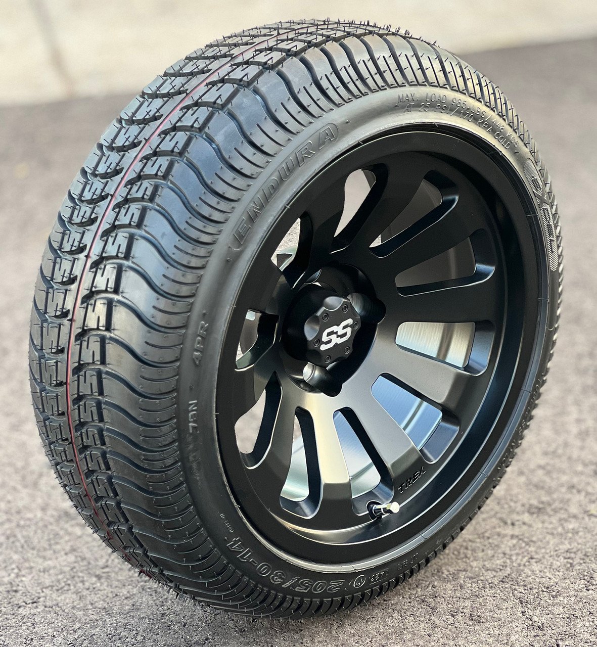 The 14″ ORION Matte Black golf cart wheels are ridiculously good looking. And if you are looking for a fresh and killer style no one else has, the ORION golf cart wheels from TREX are for you! This combo comes mounted on 205/30-14 DOT Low Profile (DOT approved) and and turf safe tires for a winning combination on the streets and the golf course. With a fully sport off-road inspired design, but clean modern finish, the ORION comes painted in brilliant Matte Black paint that brings up the intensity of any cart they are installed on. And as always, they are built to withstand the test of the elements and are easy to clean too.