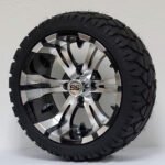 Bring a cleaned up and classic look to your golf cart with the amazing 14″ VECTOR on STINGER All Terrain tires combo! These Machined/Black Aluminum wheels are lightweight and tough, and really catch people’s eye in person. They are everything you could possibly want in a high performing all terrain wheel and tire combo!