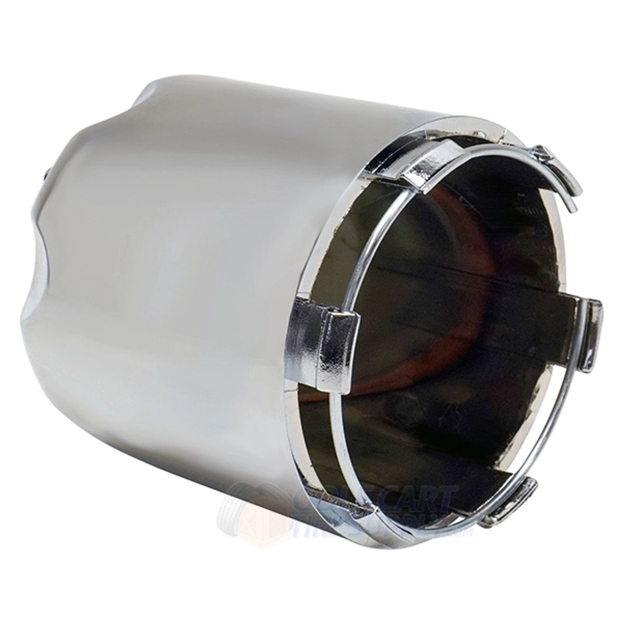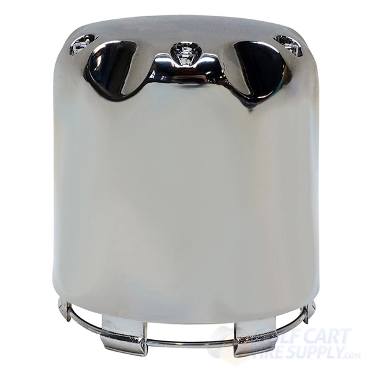 Set of 4 (full wheel set) of high quality CHROME Snap-In golf cart wheel center caps. Simply snap in the center cap from the front of the wheel prior to installing your wheels on your cart!