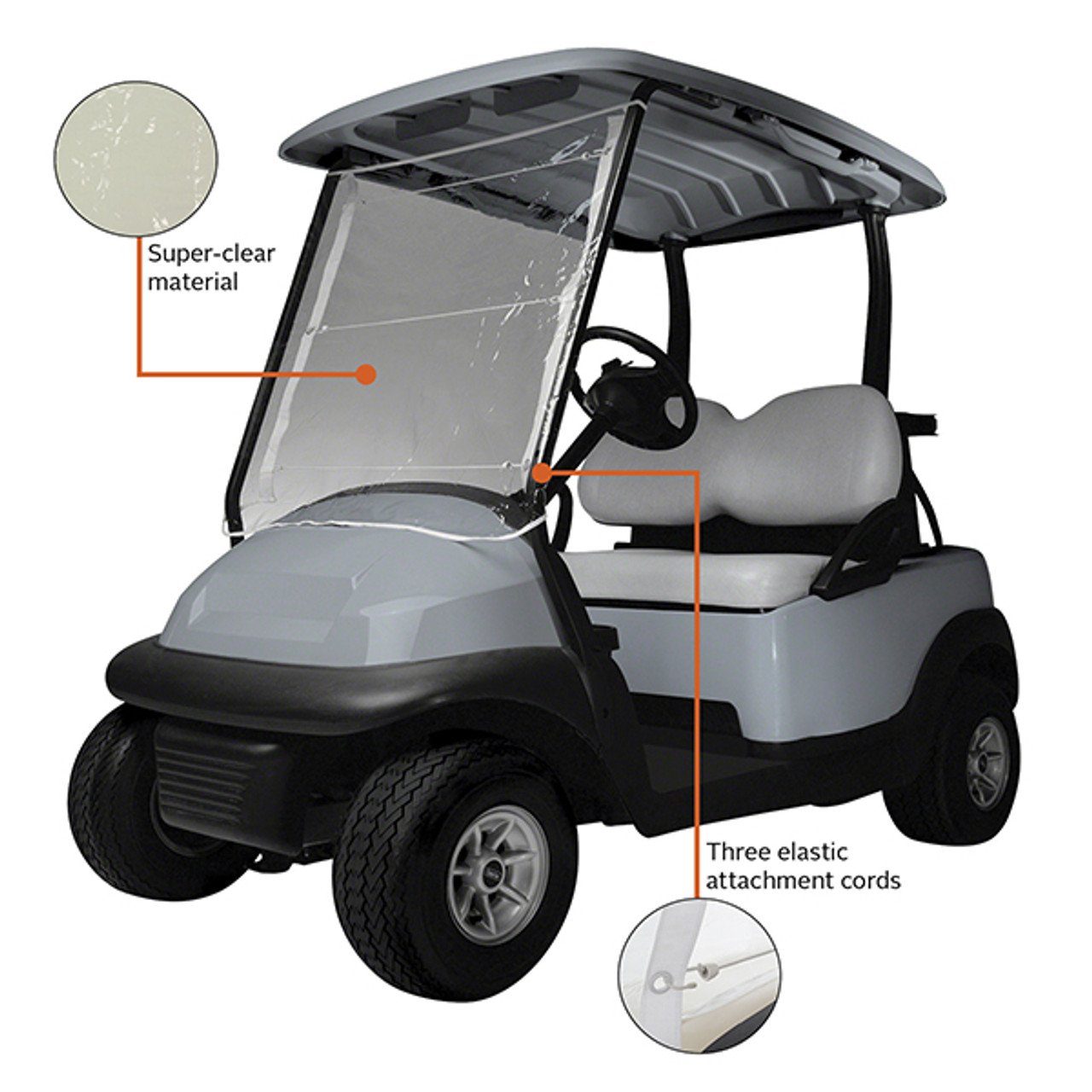 Clear Vinyl Portable Golf Cart Windshield (Flexible PVC, Fits ALL Carts)