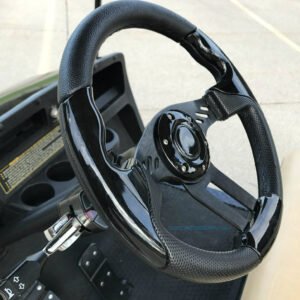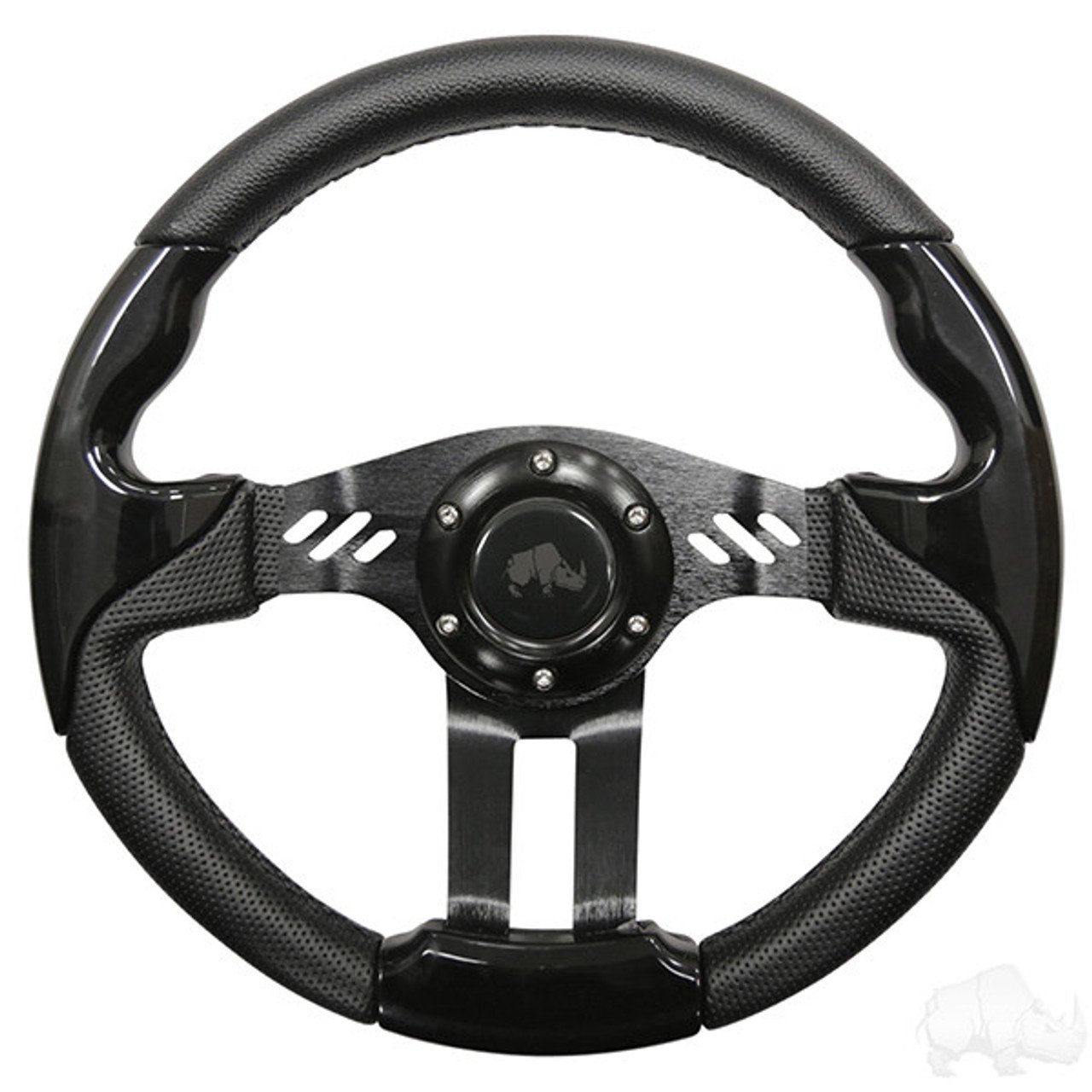 This RHOX high performance AVIATOR 5 Black/Black steering wheel is an easy way to upgrade both the look and feel of driving your golf cart. The ergonomically designed hand grips feel much more comfortable than stock Club Car golf cart steering wheel grips and look fantastic too!