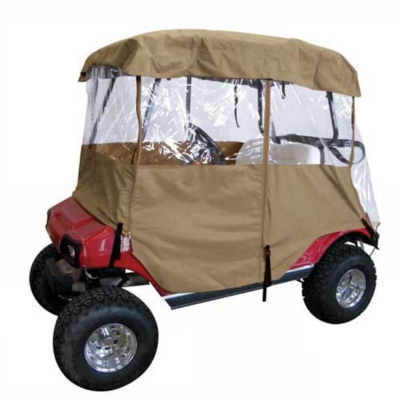 Deluxe Driveable 2-passenger Golf Cart Enclosure (Fits Standard Factory Tops, 57-61″) – TAN