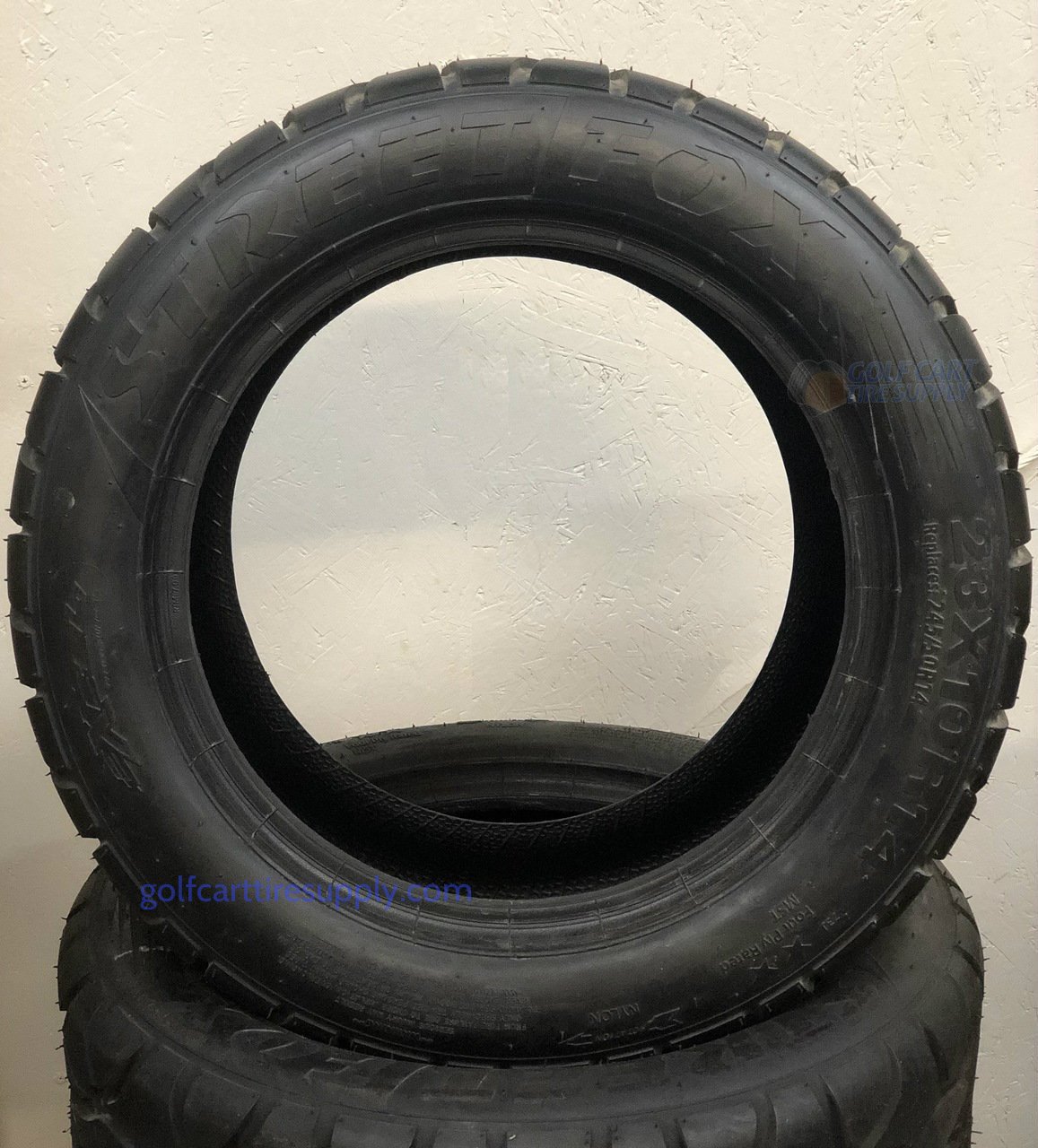 Looking for a smooth street ride on your lifted golf cart? Look no further than the tough Street Fox Radial tires! These tires provide long lasting tread-life and are gentle on turf and grass (turf safe) while giving you the ultimate street traction.
