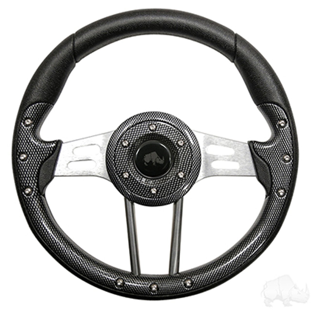 This RHOX high performance Carbon Fiber/Aluminum steering wheel is an easy way to upgrade both the look and feel of driving your golf cart. The ergonomically designed hand grips feel much more comfortable than stock EZGO steering wheel grips and look beautiful!