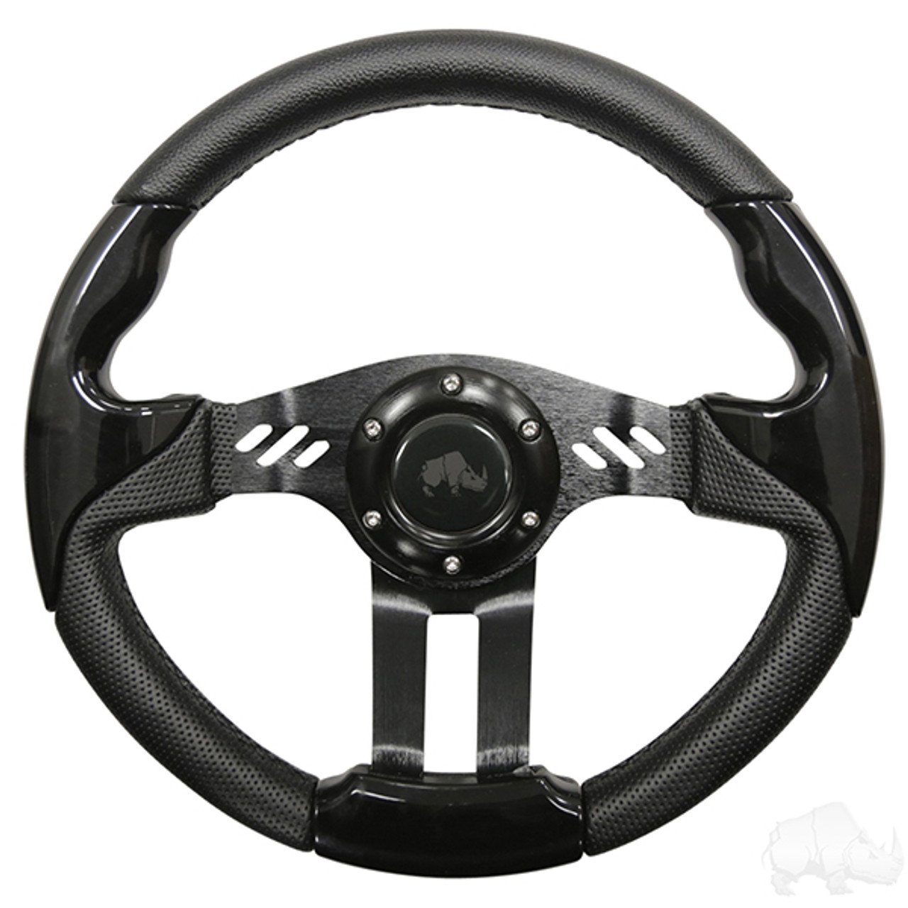 This RHOX high performance AVIATOR 5 Black/Black steering wheel is an easy way to upgrade both the look and feel of driving your golf cart. The ergonomically designed hand grips feel much more comfortable than stock EZ-GO golf cart steering wheel grips and look fantastic!