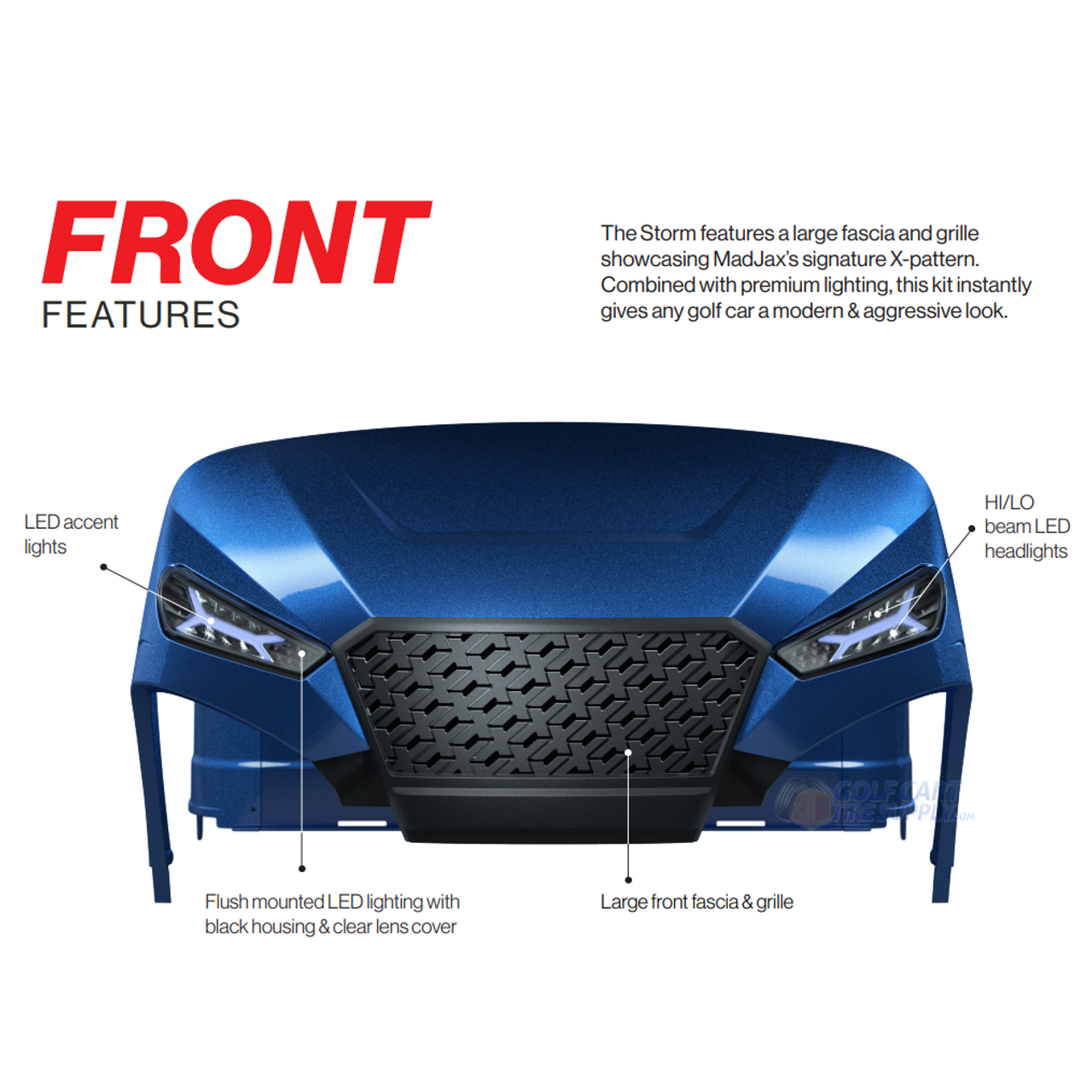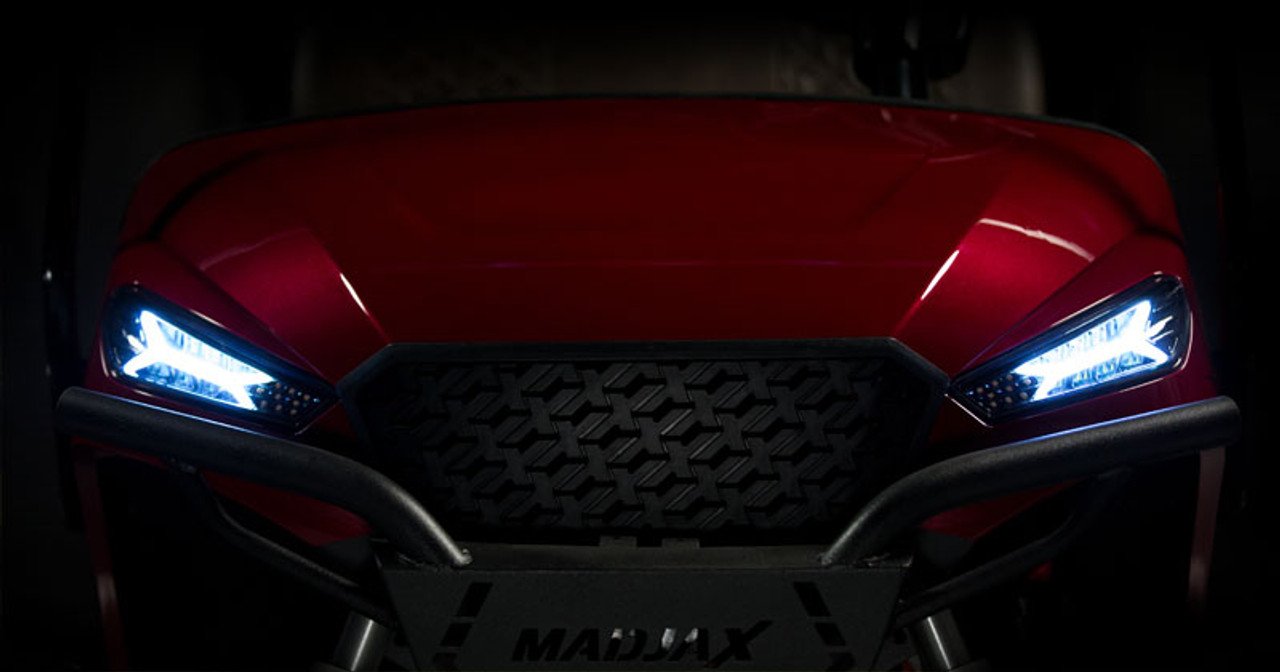 Bring your golf cart into the future, with the new fully automotive inspired MADJAX STORM body kit! Stand out from everyone else in the neighborhood by dressing up your EZ-GO TXT Golf Cart today.