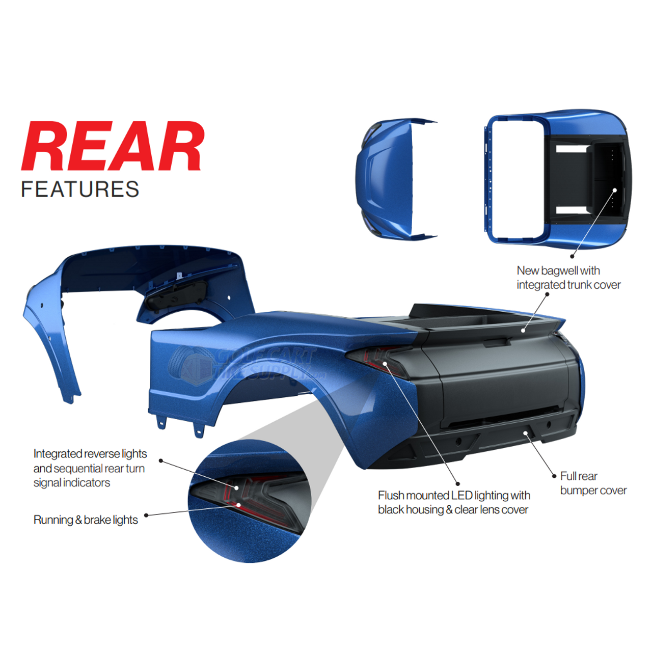 No matter what color you choose, this golf cart body kit will turn heads EVERYWHERE you go! Choose from Seastorm (mint green), Black, White, Cherry Metallic, Admiral Blue Metallic, Forest Green, and more.