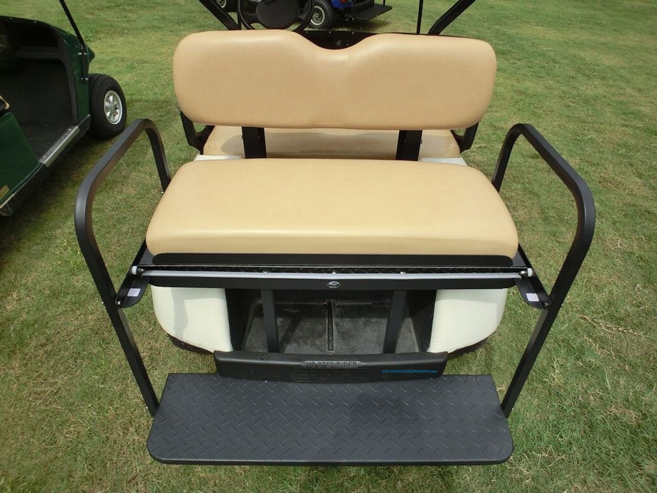 EZGO TXT/ Medalist / PDS Golf Cart Rear Seat Kit NOMAD – TAN Color – Flip Seat w/ Cargo Bed & FREE Grab Bar