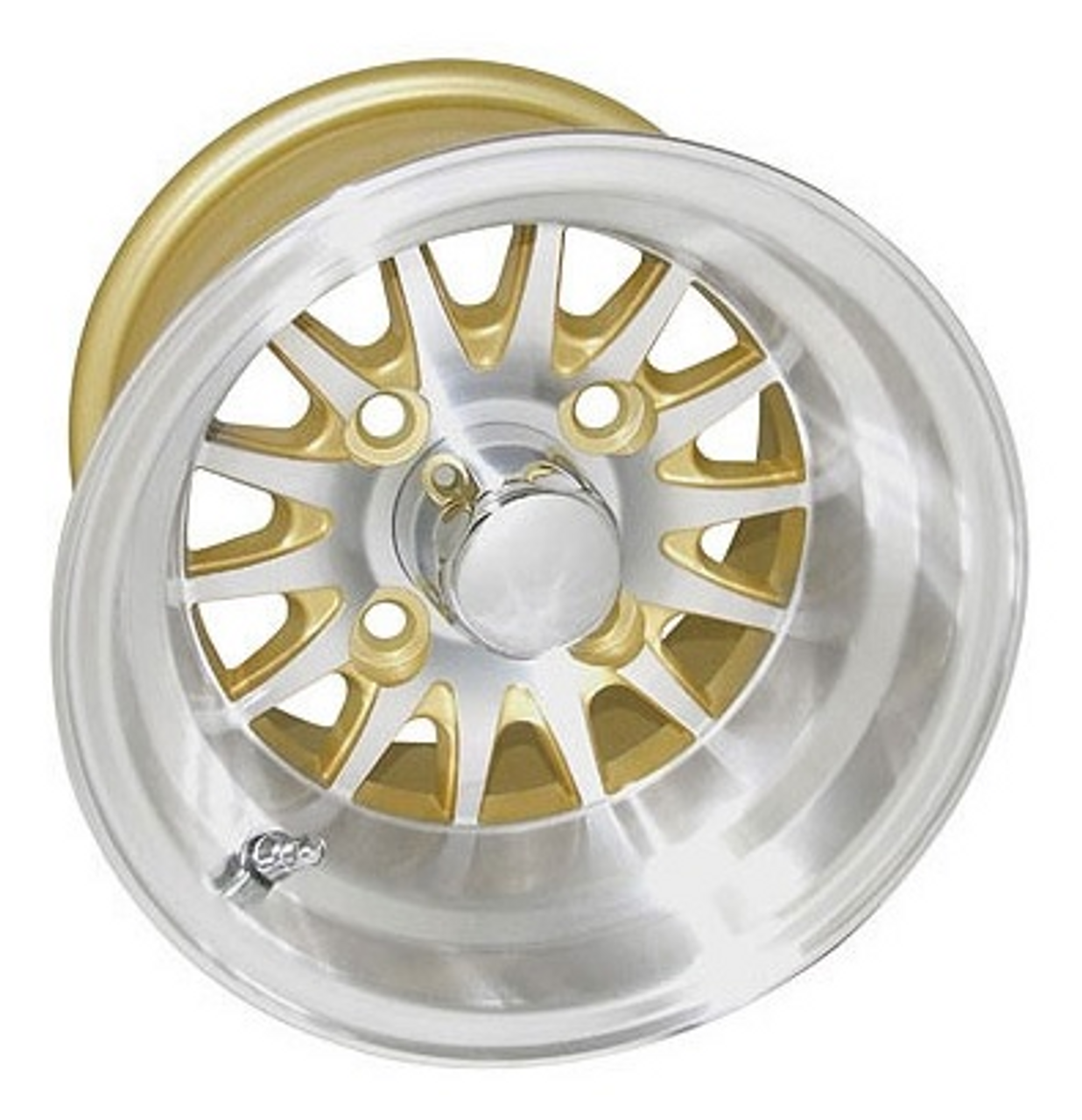 Phoenix 10″ Machined/ Gold Golf Cart Wheels 14 spoke – Set of 4