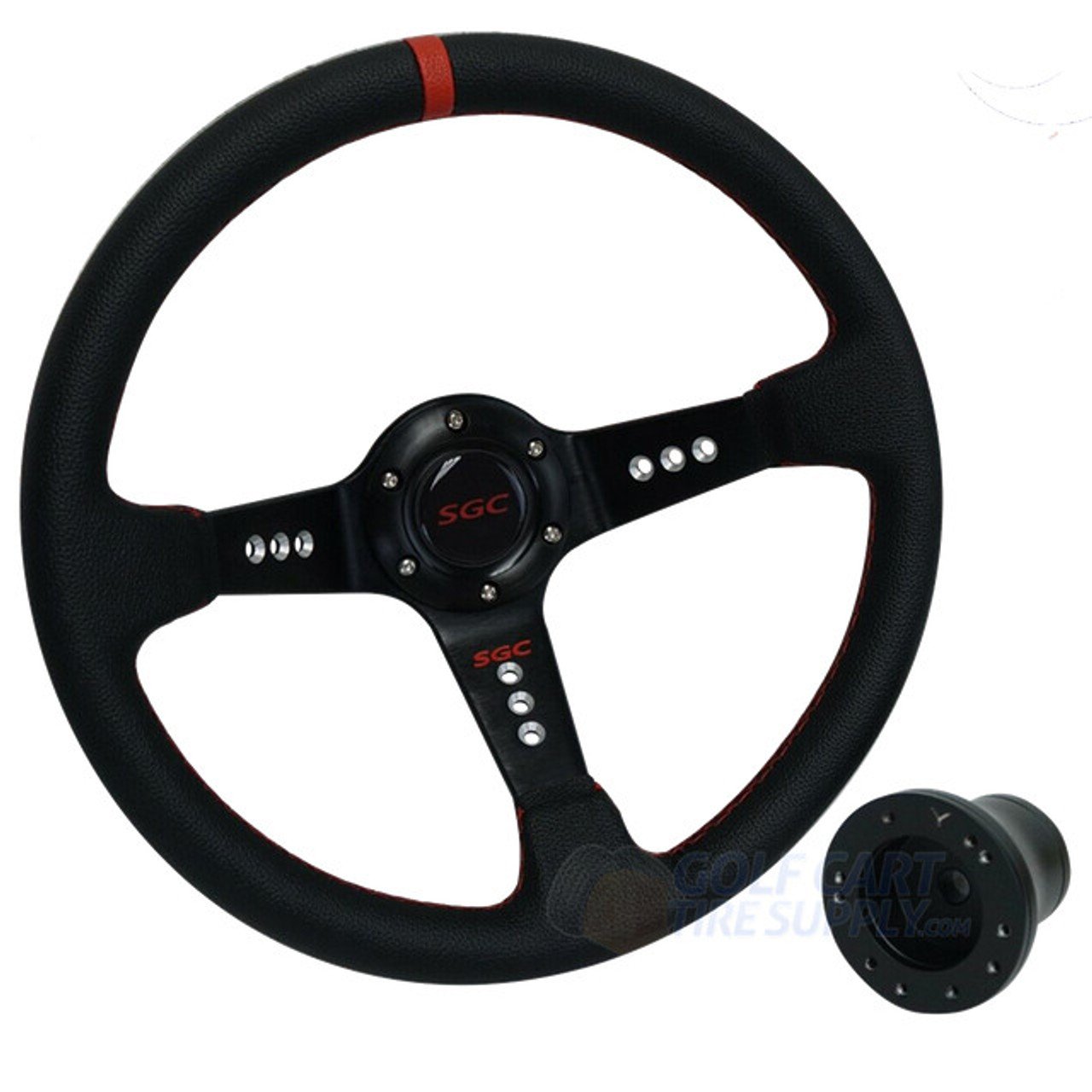 SGC SPORT 13″ EZGO Steering Wheel Black / Red (Fits ALL TXT / RXV)