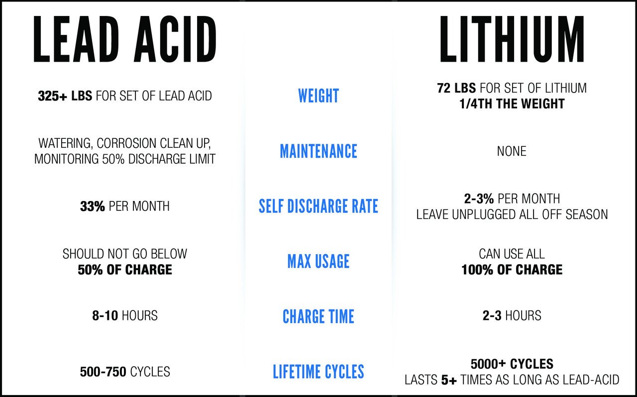 This is the only Lithium Solution with golf cart batteries made to the exact dimensions as the factory sized lead-acid batteries, so installation and the connection points are the same.